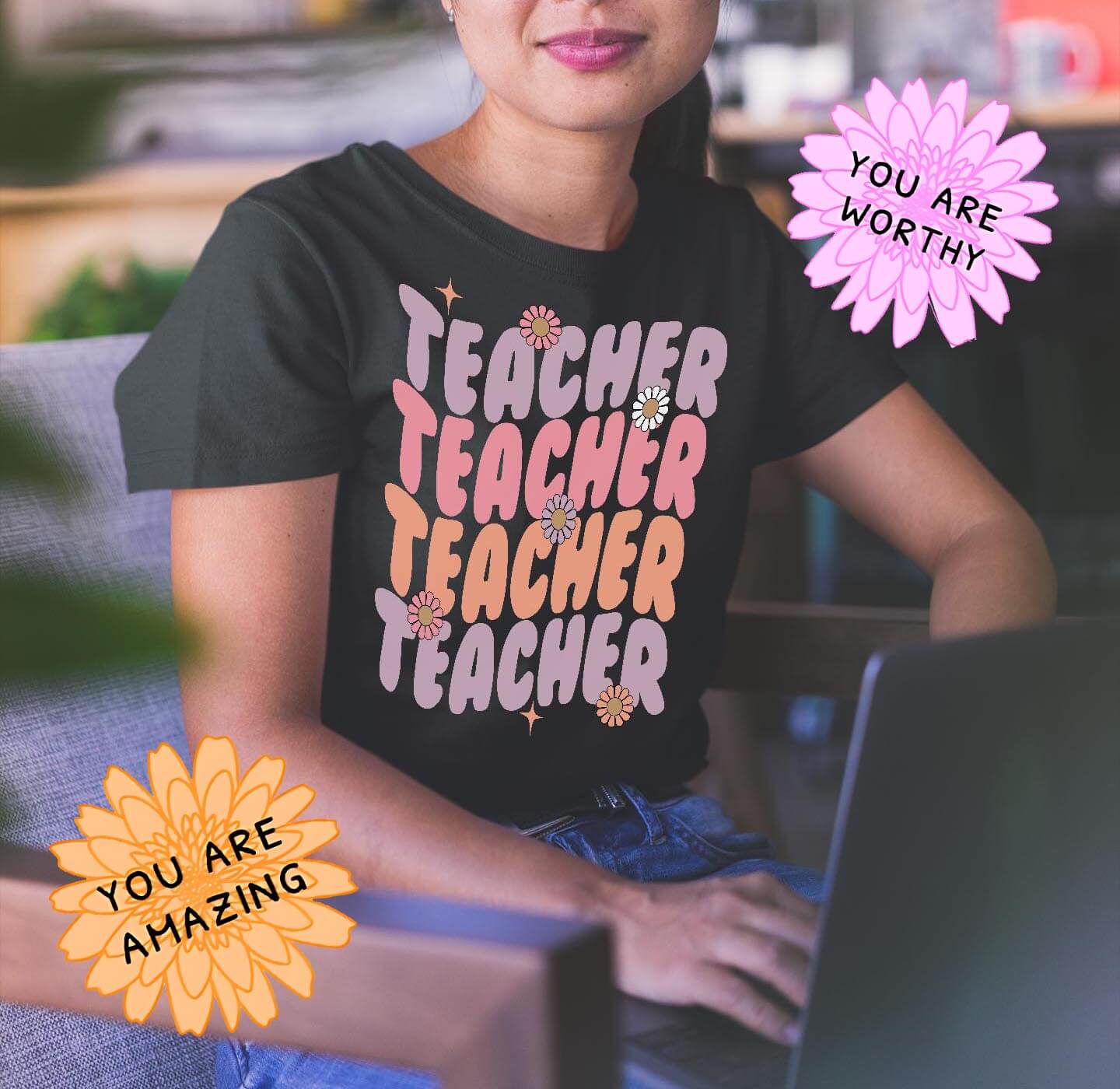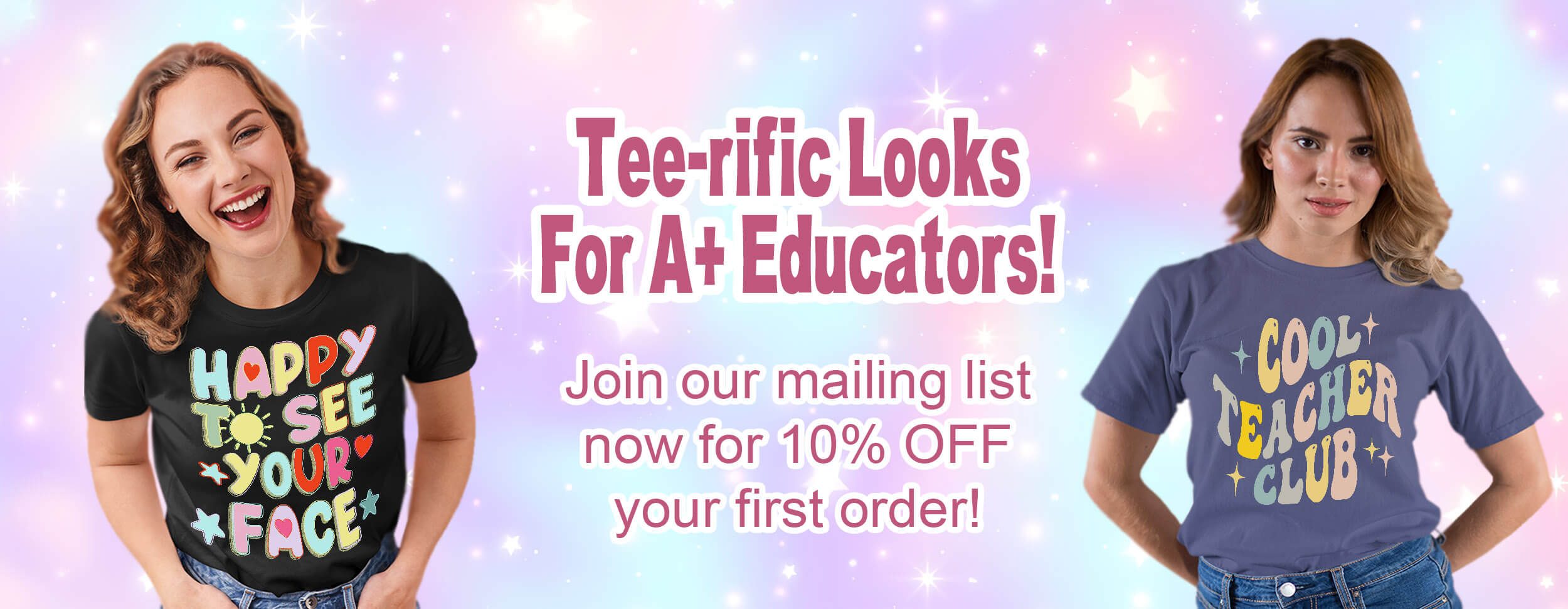 Sign up (scroll to the end) to enhance your look with our teacher tees and stay in the loop for new drops and exclusive deals.